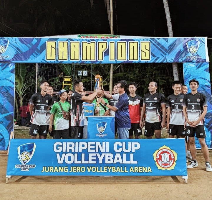 Sebagai puncak acara, Drs. Nur Wahyudi, M.M. menyerahkan piala bergilir kepada Landak VC Jurangjero, menandai keberhasilan tim tersebut sebagai juara Giripeni Cup 2025. Dalam sambutanya, Kepala Dikpora Kulon Progo menyampaikan apresiasinya karena telah berhasil menyelenggarakan Turnamen Voli sekaligus menjadi hiburan dan melihat talenta-talenta yang ada di Kalurahan Giripeni.